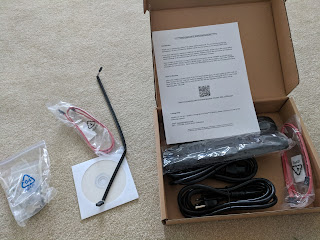 Inside the accessory box were the keys, footsies, extra header and SATA cables, the recovery DVD for the firmware (with manual), printed QR codes to get public keys for verification, power cables, and the parts removed from the case to install my BTO options described below.